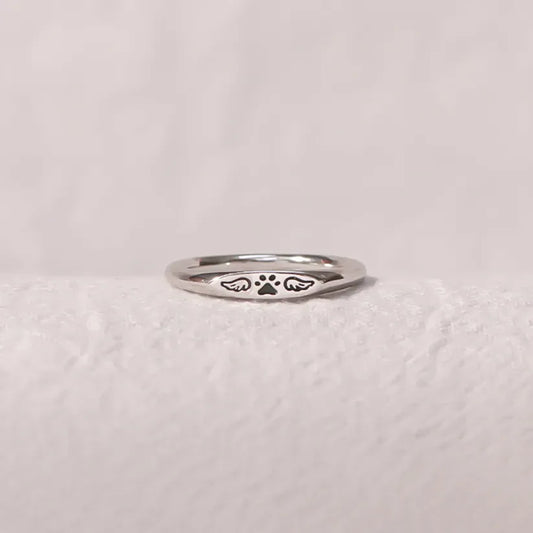 For Memorial | My Four-Legged Angel Is Always Near, Tiny Paw with Wings Ring
