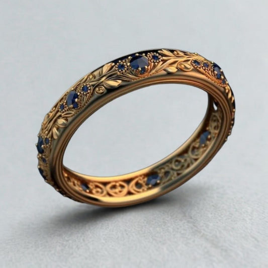 Exotic Hollow Floral Crystal Gold Ring