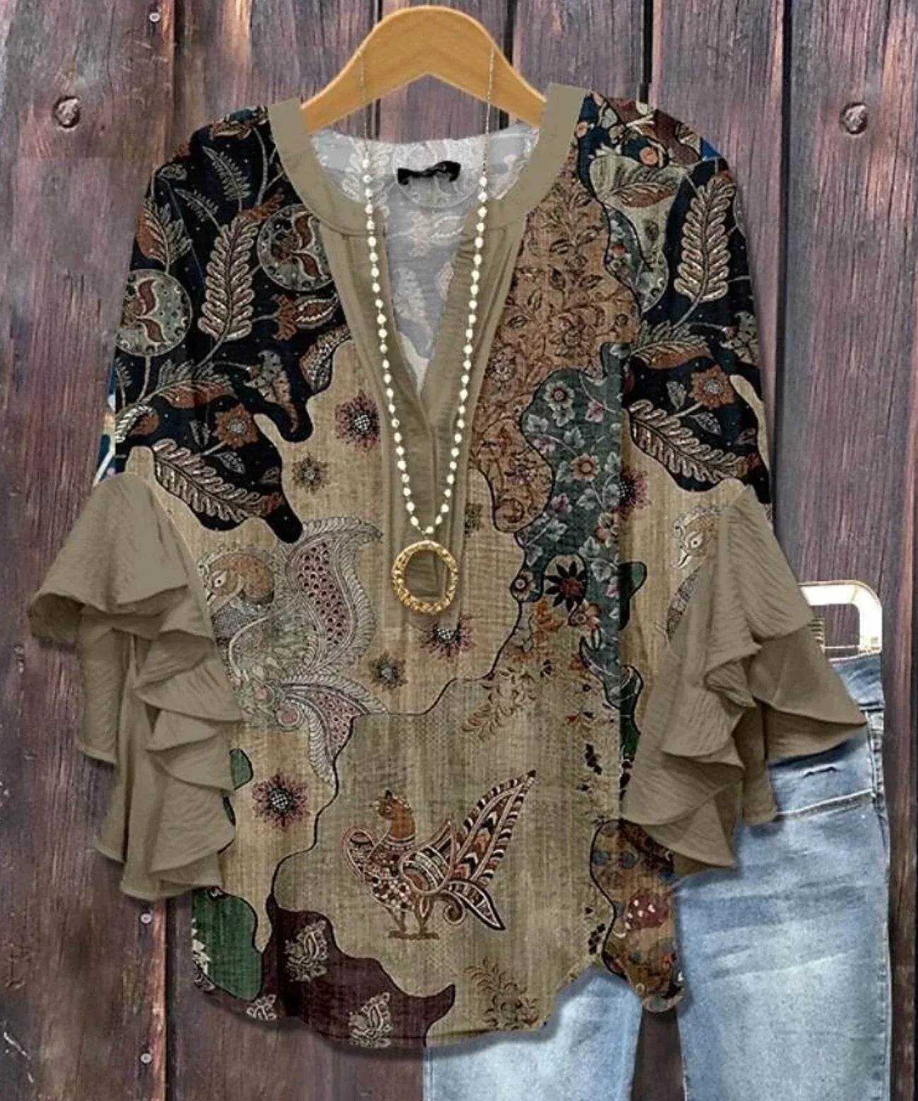 Step into effortless elegance with a blouse that feels like a soft summer breeze. The delicate floral print brings nature’s calm, while ruffled sleeves and a flowing silhouette add graceful charm. Whether you're soaking up the sun or relaxing with iced tea, this cotton beauty makes every moment feel lighter.