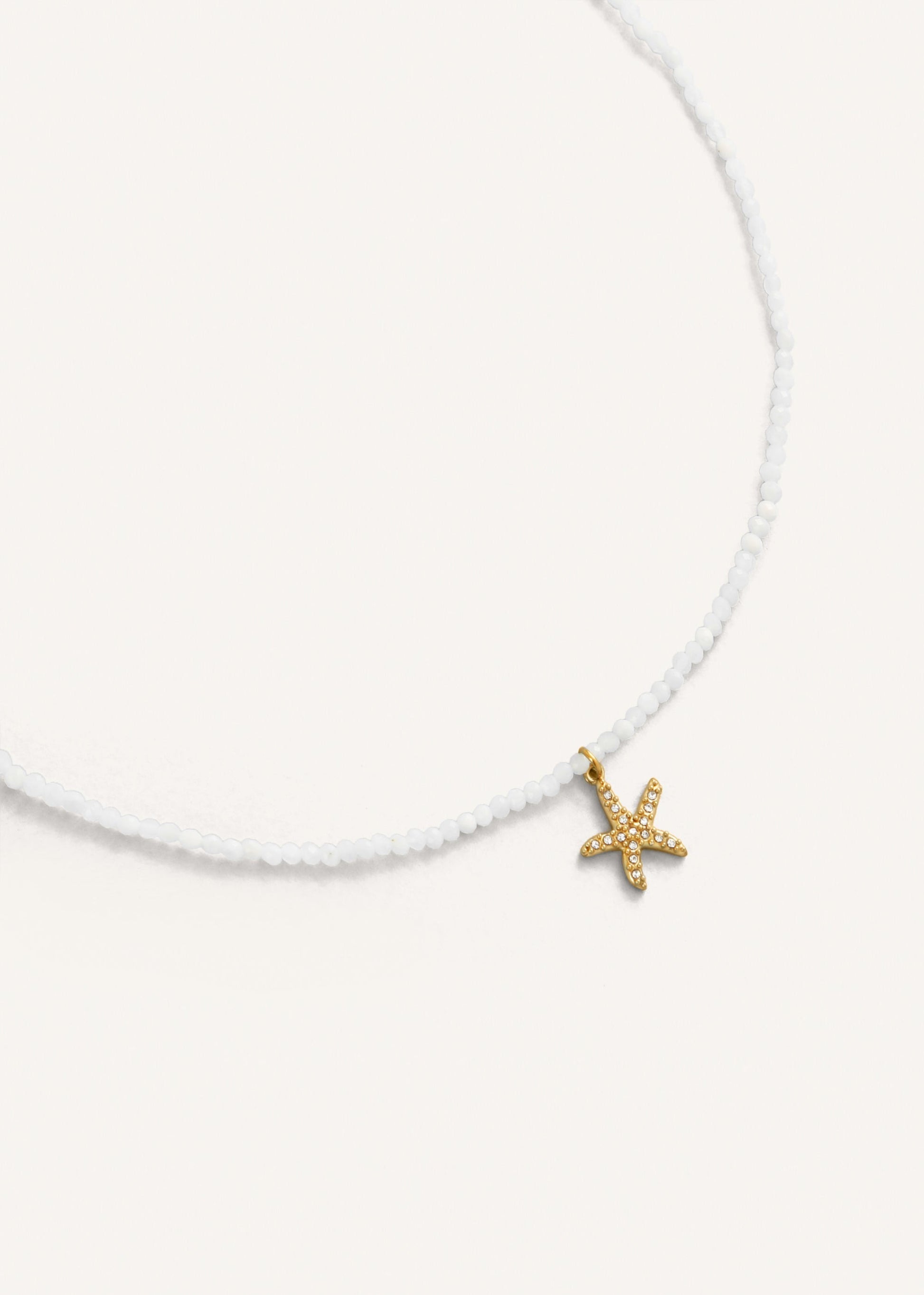 Siren Necklace – Inspired by the gentle waves of summer, this delicate necklace features white pearls and a starfish pendant, perfect for sunny days and beach vibes.