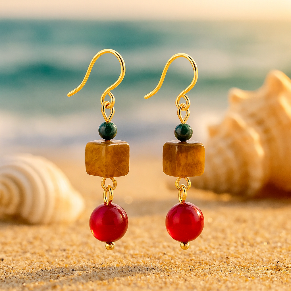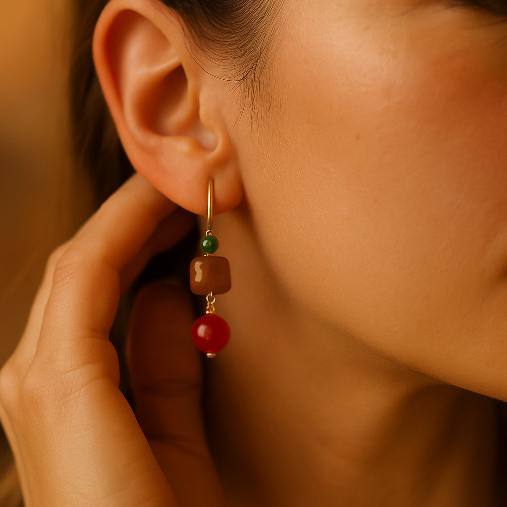 Inspired by a hidden garden where fiery petals bloom, Reila earrings capture the passion of deep red bougainvilleas and the warmth of golden sunlight. Light yet impactful, these earrings bring energy and style to every outfit.